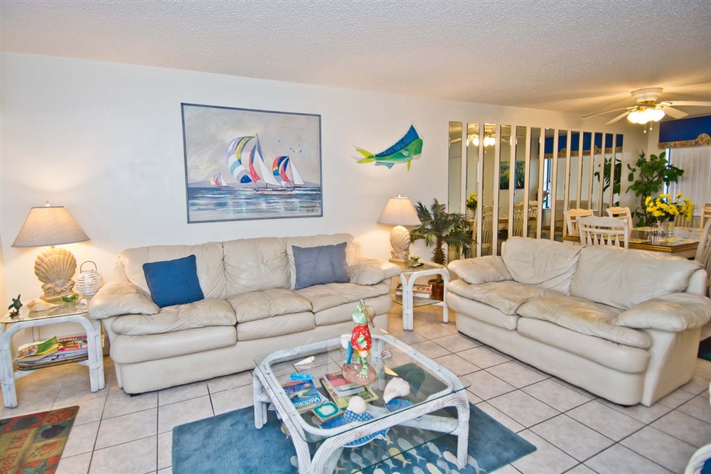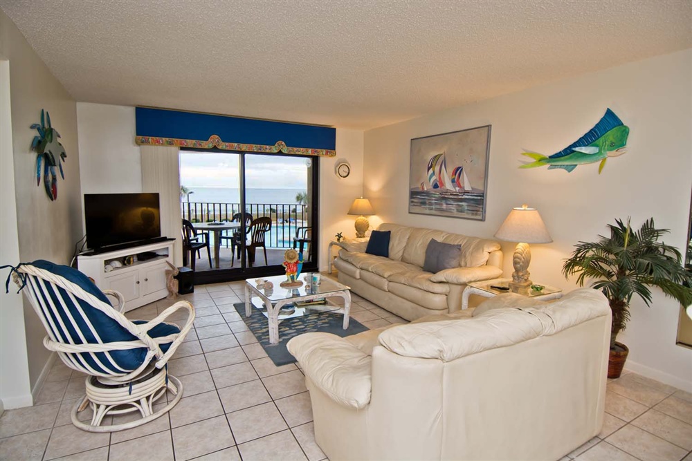 Summer Winds C-227 is an Oceanfront, 4-Bedroom, 2.5-Bath Condo on the 2nd floor. This condo boasts great views of the pool & ocean! Living Area is nicely decorated and offers a relaxing and comfortable area. Enjoy the large Flat Screen TV with DVD Player. There is a covered deck with deck furniture facing the ocean.