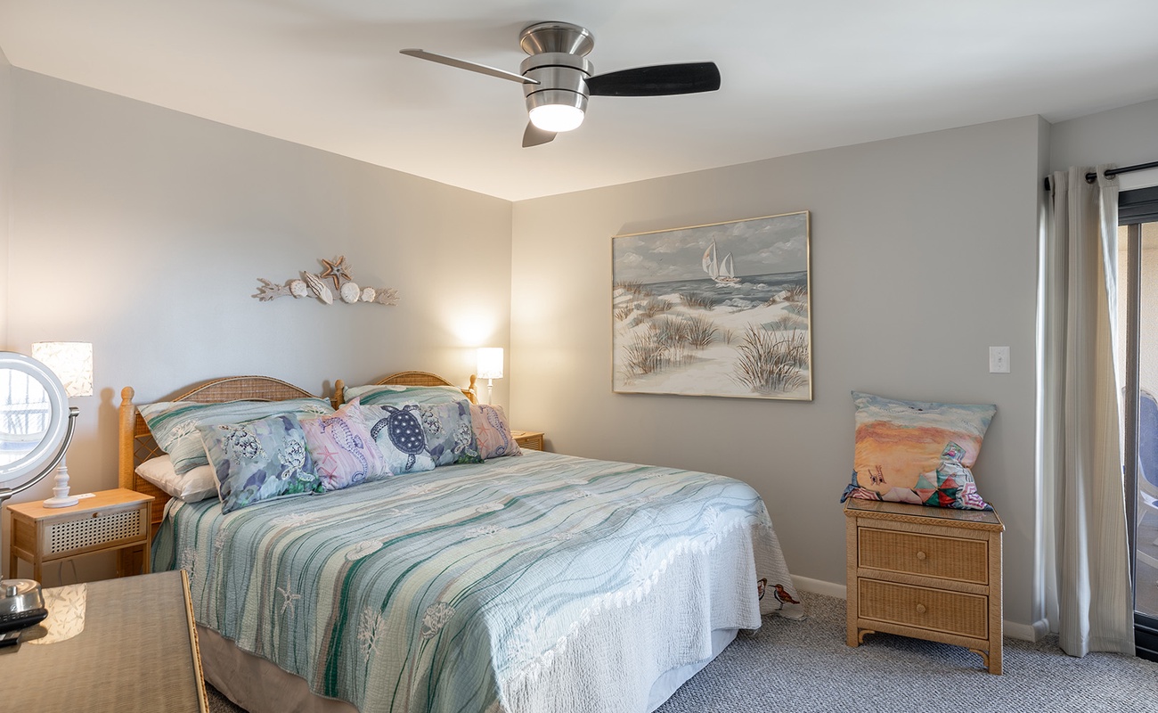 Bedroom #1 has a King Bed, TV, private bath, & deck access.