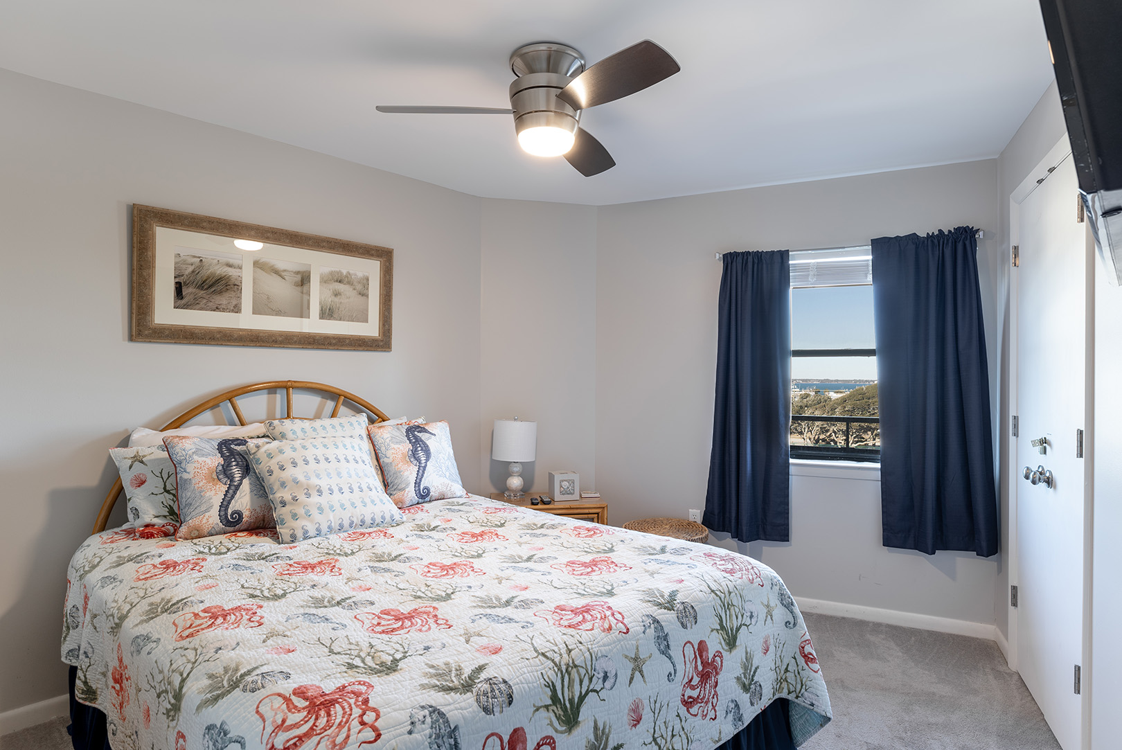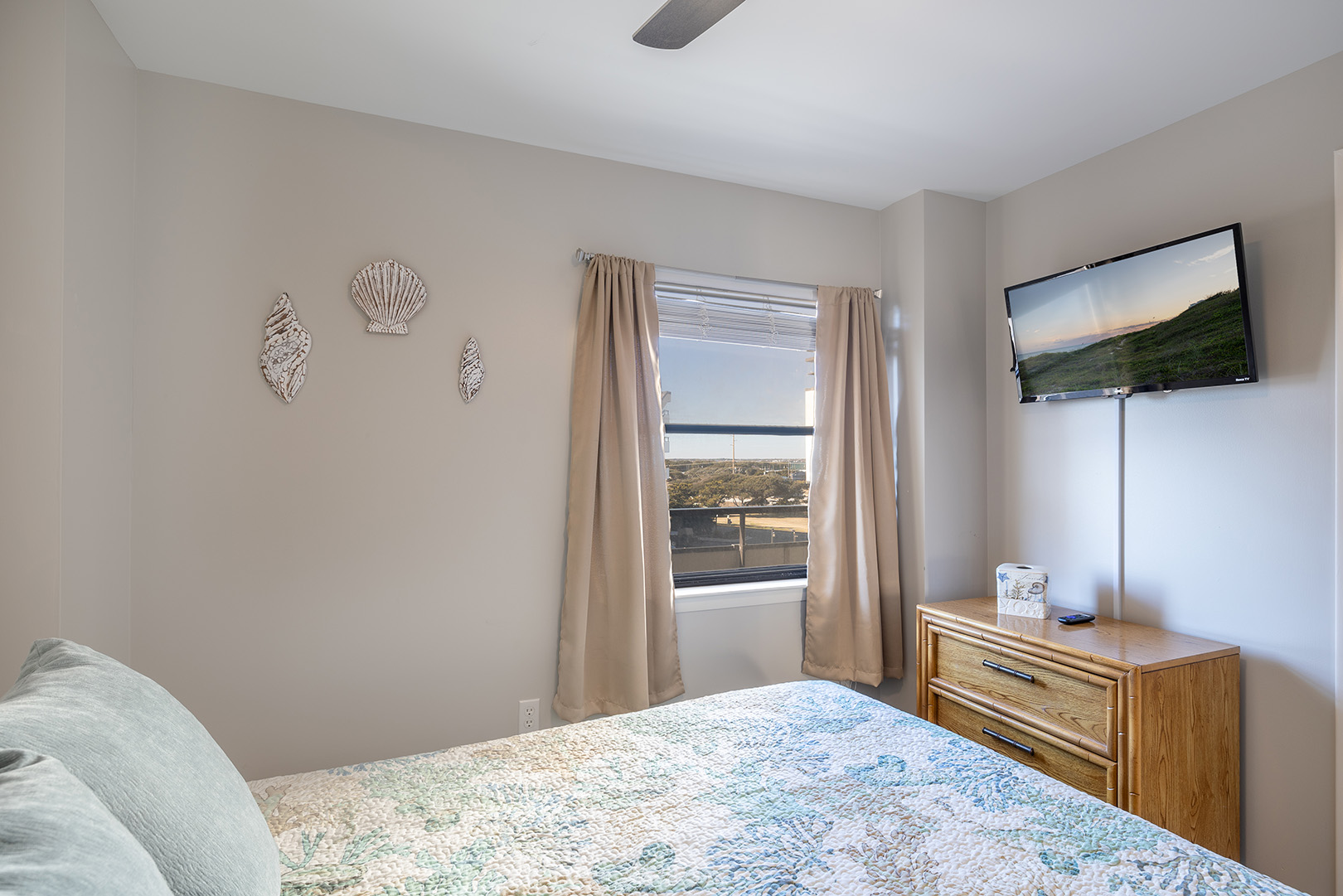 Bedroom #3 has a Queen Bed & TV, access to shared hall bath.