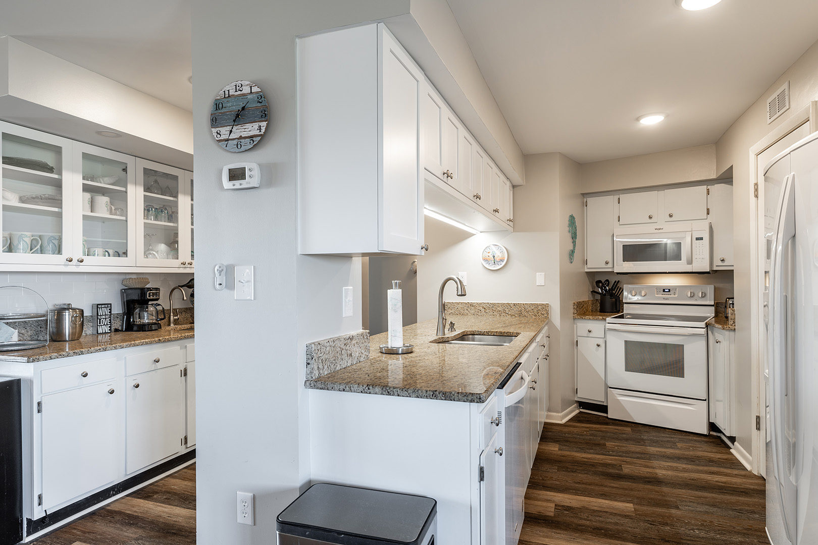 Central Heat & Air. 5 flat panel TVs including 2 Smart TVs with access to streaming apps. Interior Washer/Dryer. Refrigerator with attached ice maker, Dishwasher, Microwave. Private Covered Balcony.