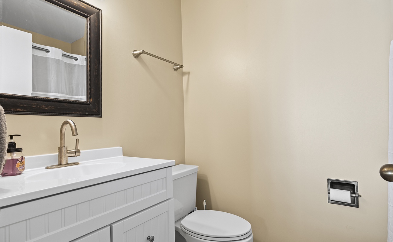 Bedroom #1: Queen Bed, Twin/Twin Bunk Set, and Shared Full Bath. Bedroom #2: King Bed with Private Full Bath.