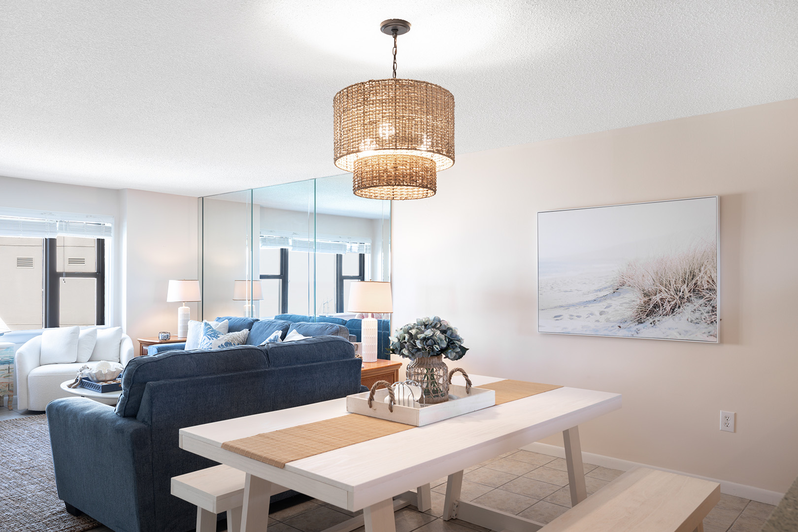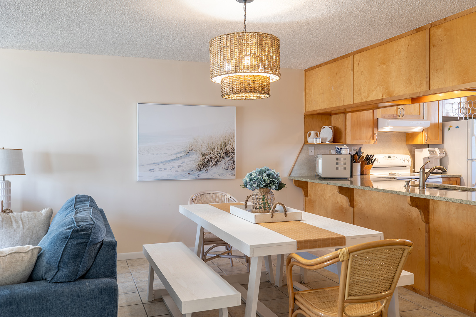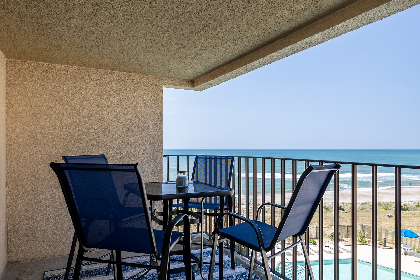 Summer Winds C-428 is a Direct Oceanfront Condo! From the living area, you have an amazing view of the ocean and can hear the sound of waves crashing against the shore providing atmosphere of peace and relaxation. The open-concept design seamlessly connects the living room, dining area, and kitchen, making it perfect for both entertaining and intimate family gatherings. Recently updated, modern furnishings are complemented by coastal-inspired décor. Recently renovated bathrooms!