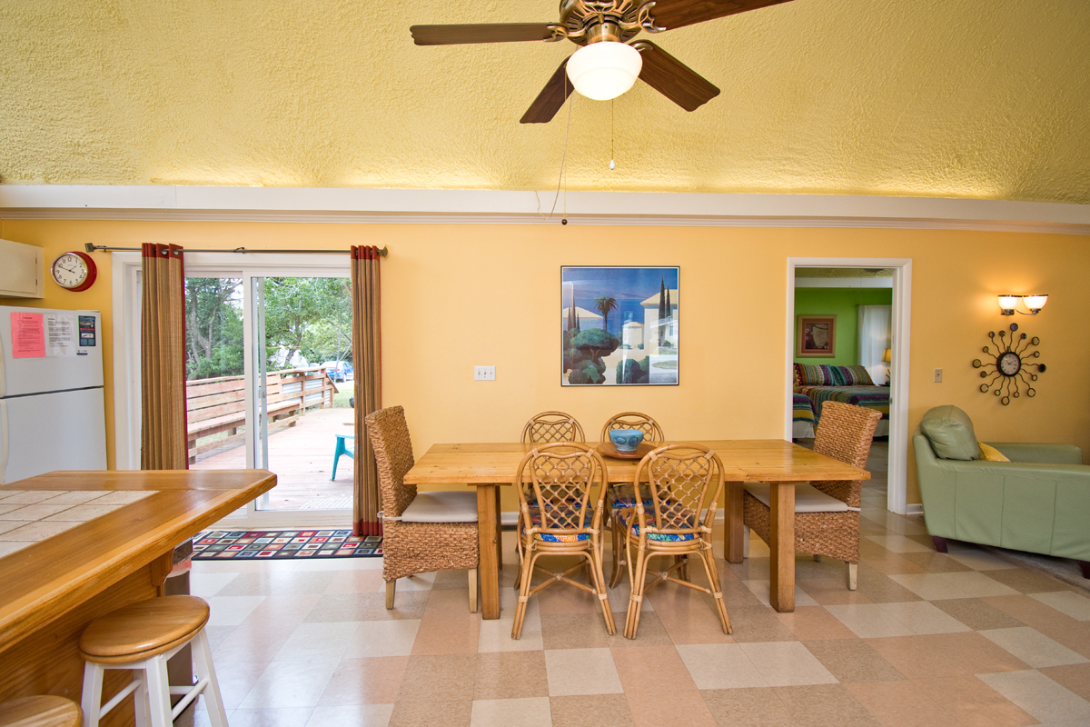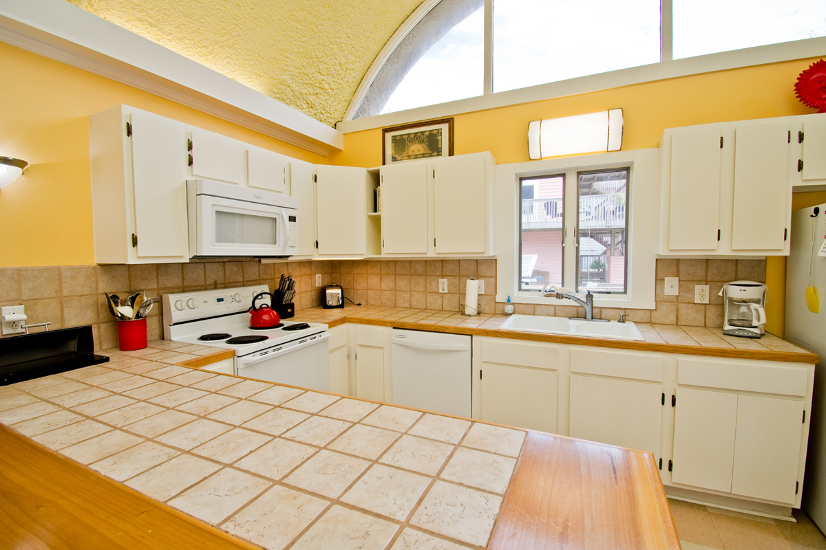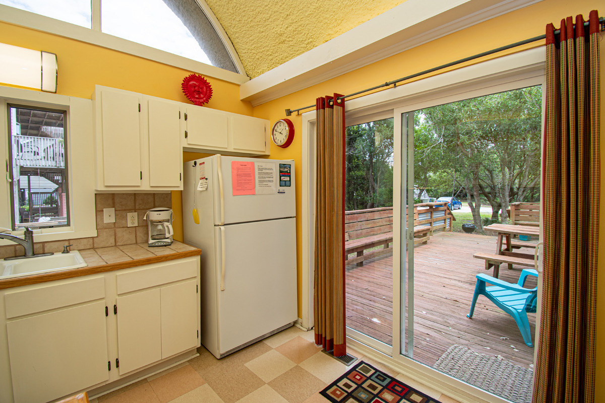 Level One: Dome cathedral ceilings in large open living area with a Flat Screen TV. Dining Area with seating for six. Kitchen area with dishwasher & microwave. A private open deck is just off the kitchen and has a picnic table, Grill, lots of seating and is perfect for entertaining!