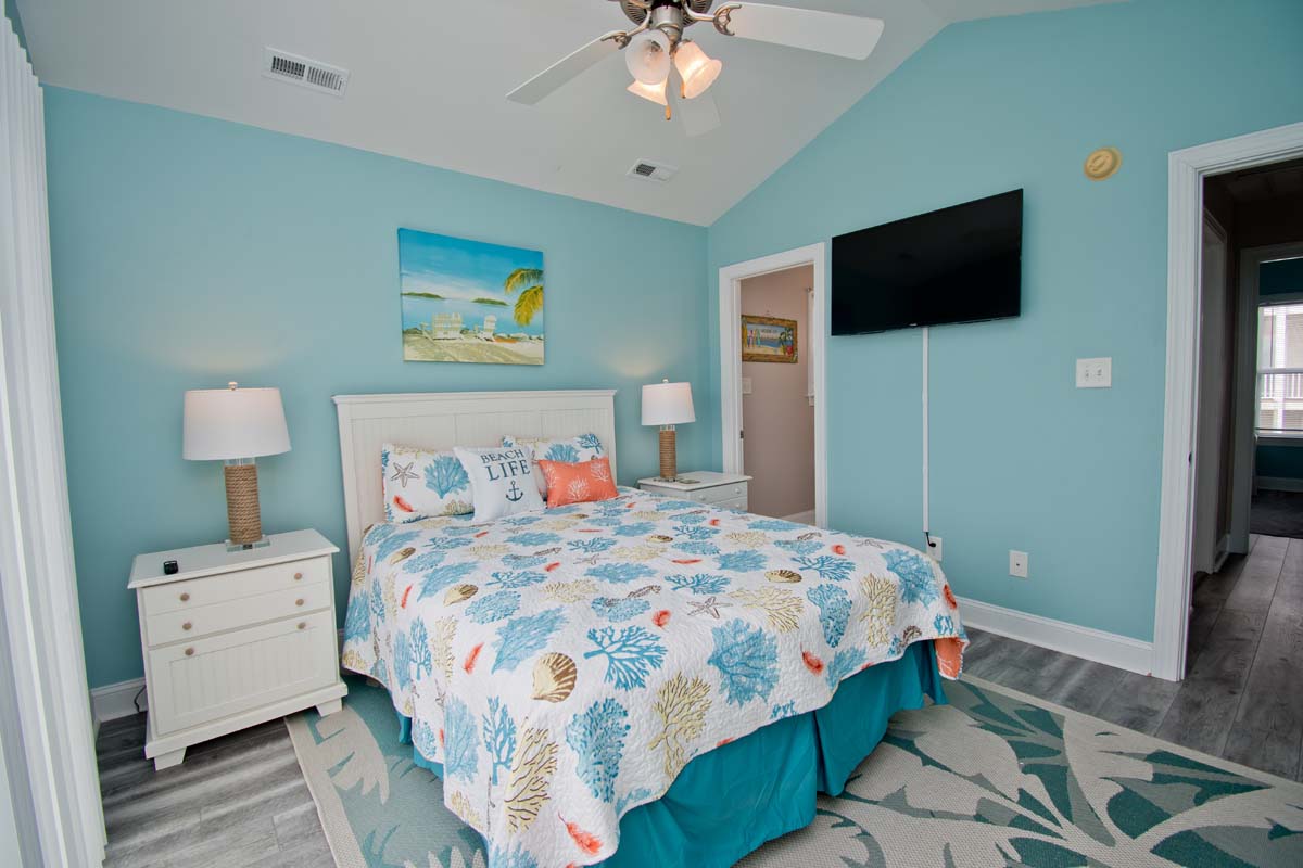 Floor #2 - Bedroom #2 Queen Bed, TV, Shared Bath, Deck Access |