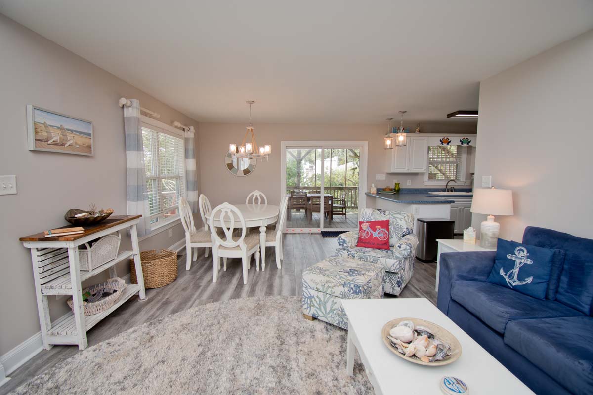 Sunny Side is a 3-bedroom, 3-bath Soundside home located in Emerald Isle. Located only approximately 3 blocks away from the beach you will be enjoying the sand between you toes in no time! Enjoy relaxing and swimming in your very own Private Pool!