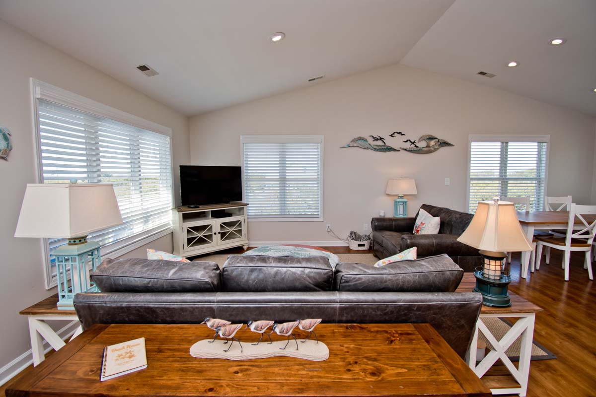 Surf N Dolphin is a beautiful oceanside house in Emerald Isle with 3 bedrooms and 3.5 bathrooms. It's beachside location grants guests quick and easy access to all that the Crystal Coast offers including various local eateries and shops!