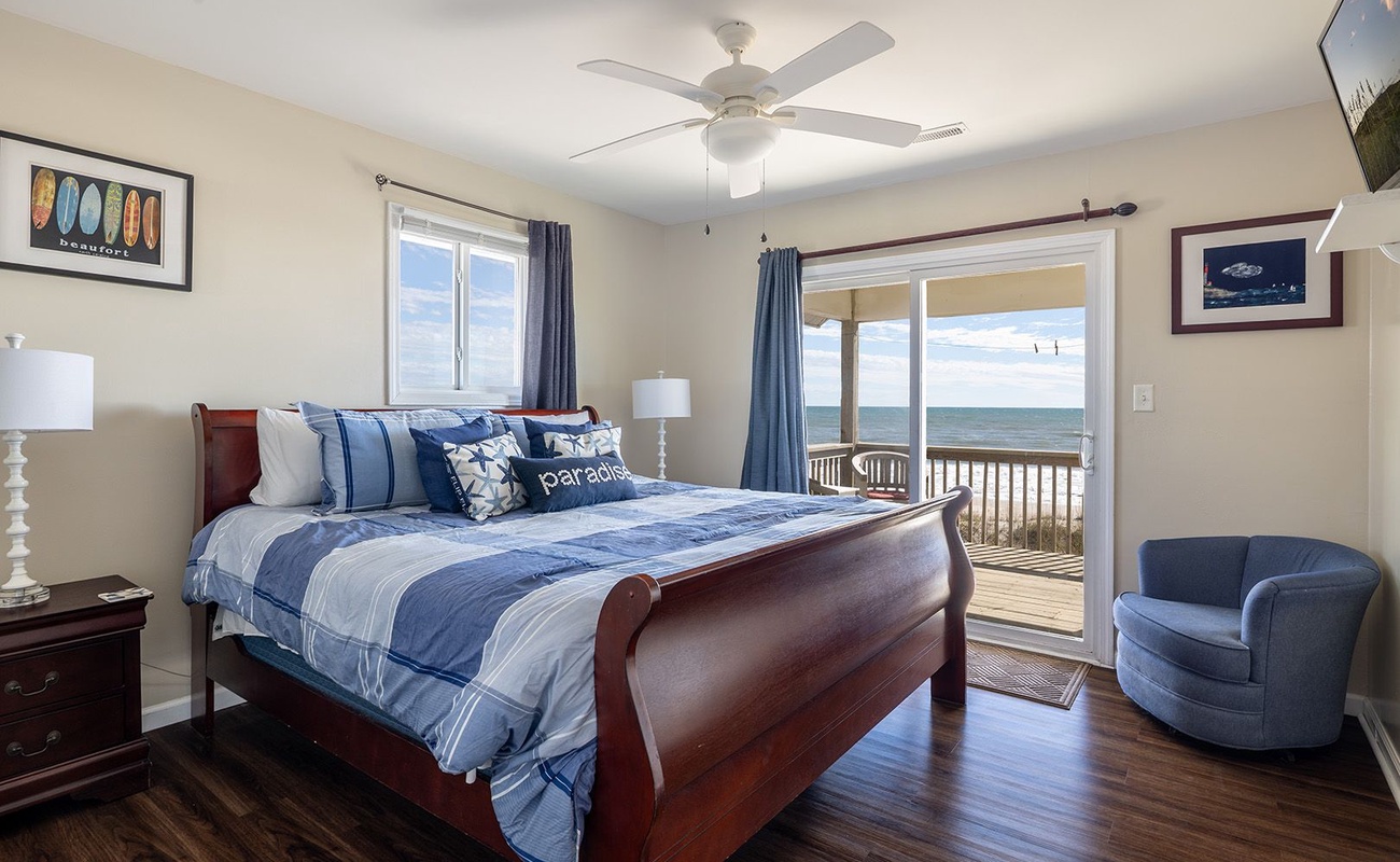 Floor 2 - Bedroom #1 King Bed - TV - Deck Access |