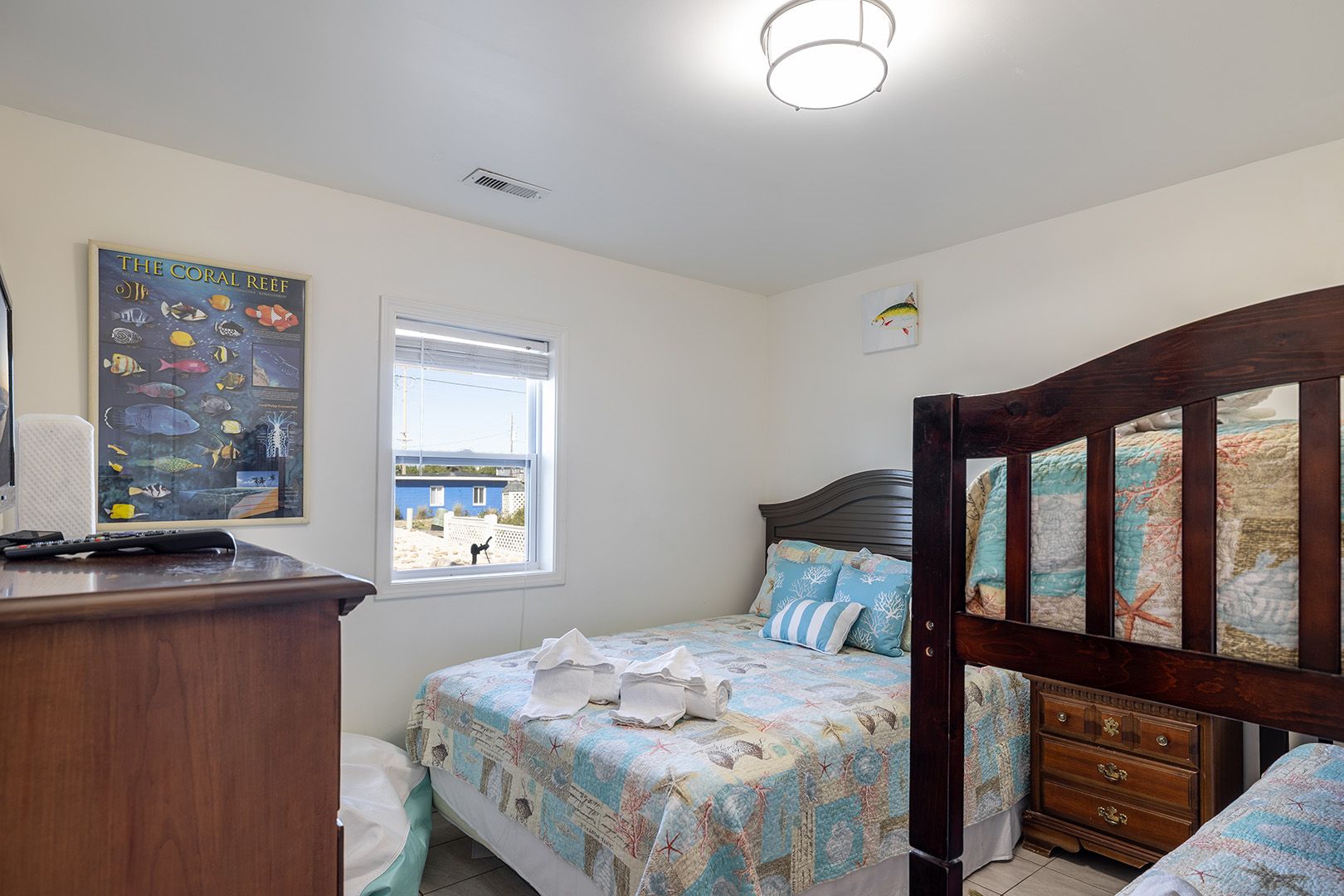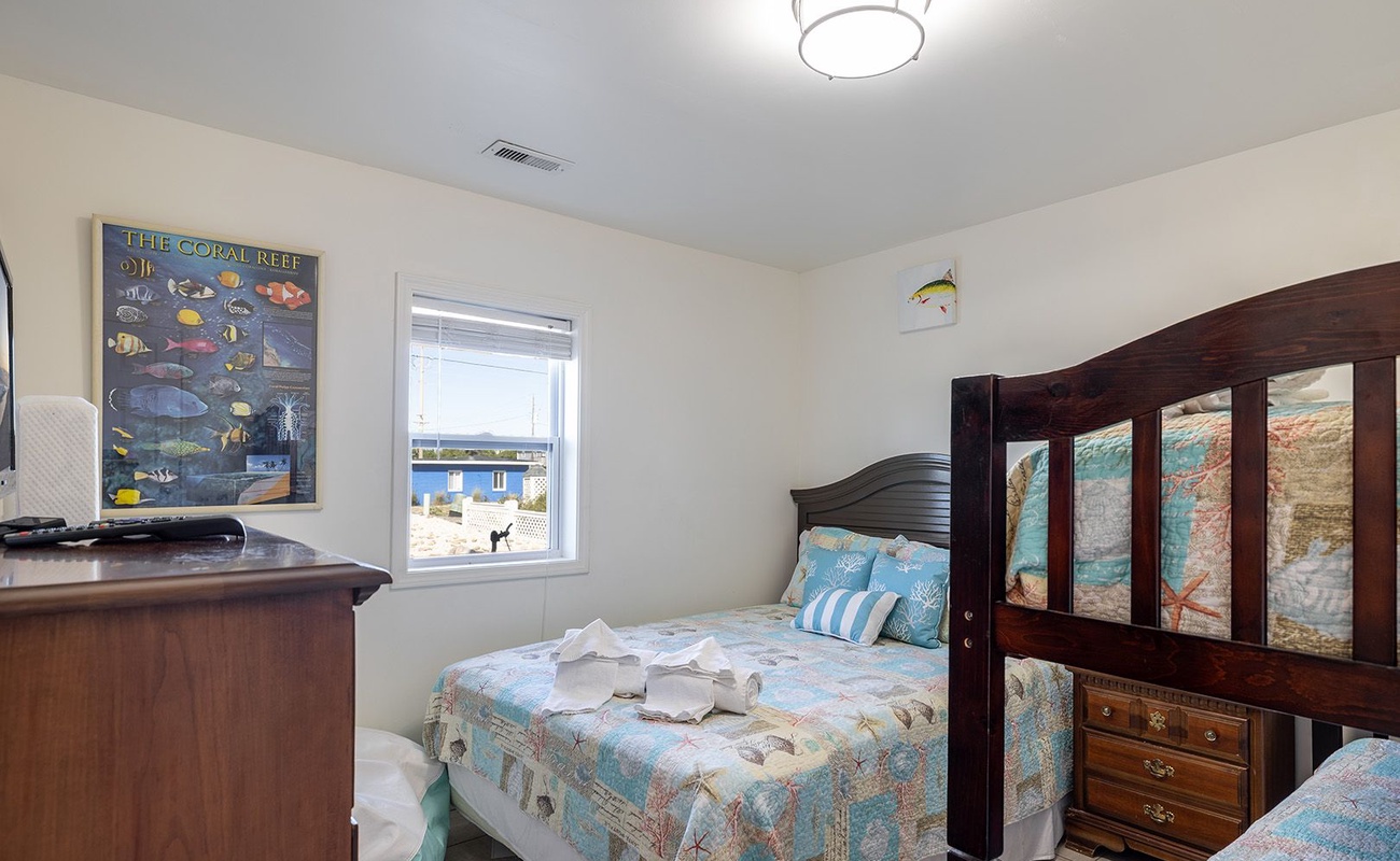 Floor 2 - Bedroom #4 Queen Bed + 1 Set of Twin Bunks - TV |