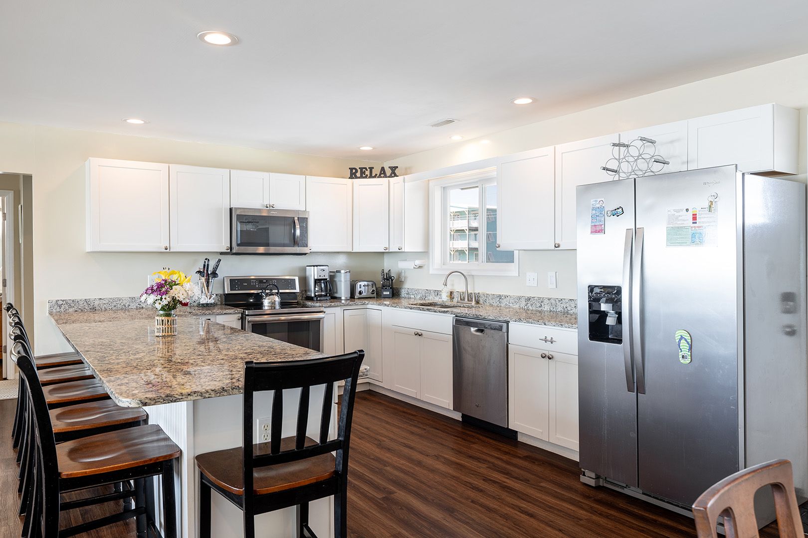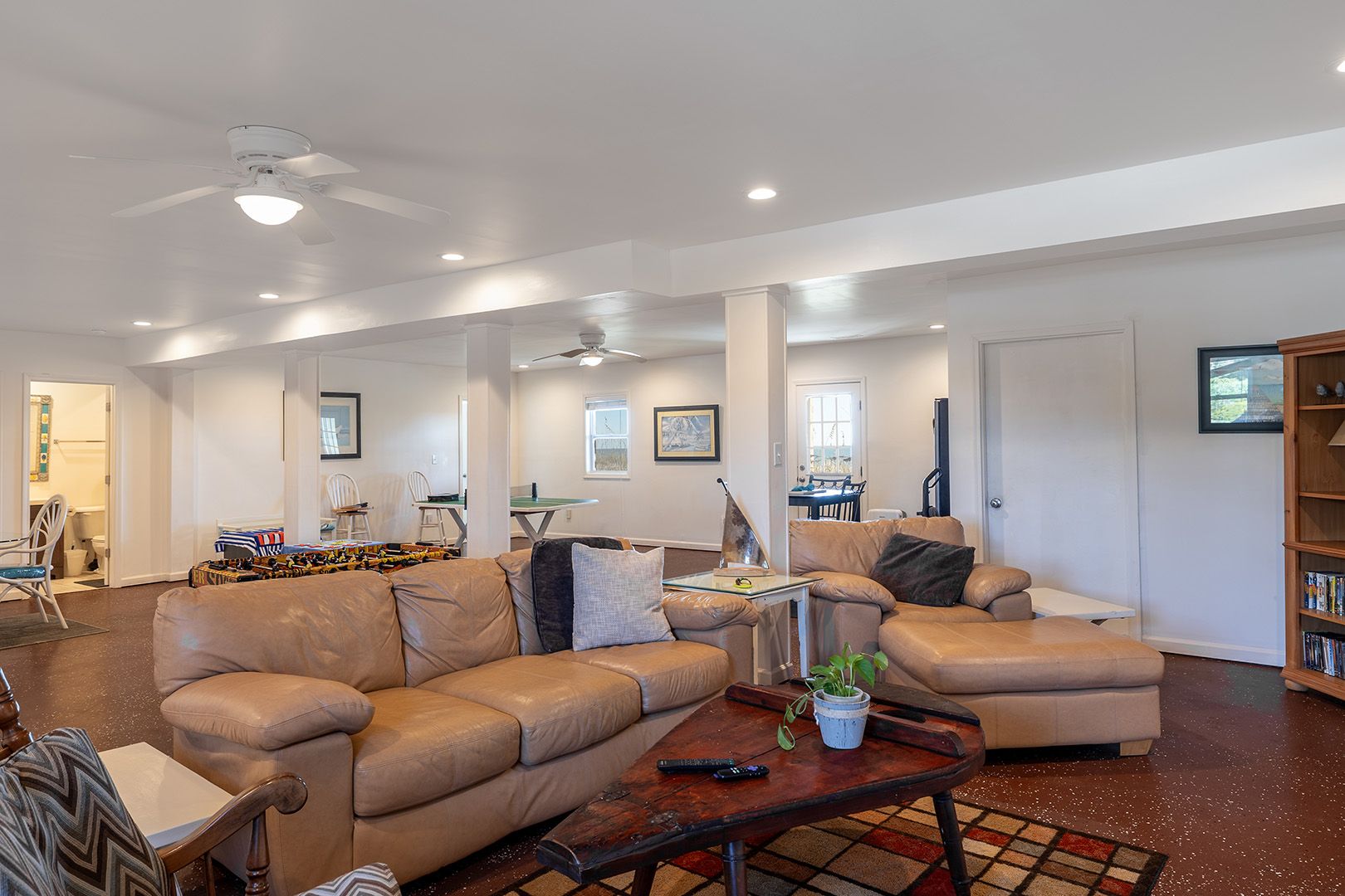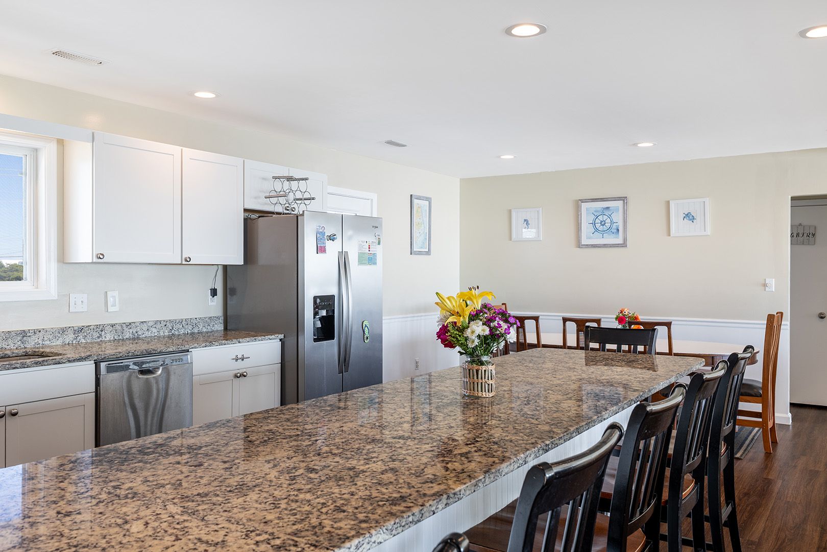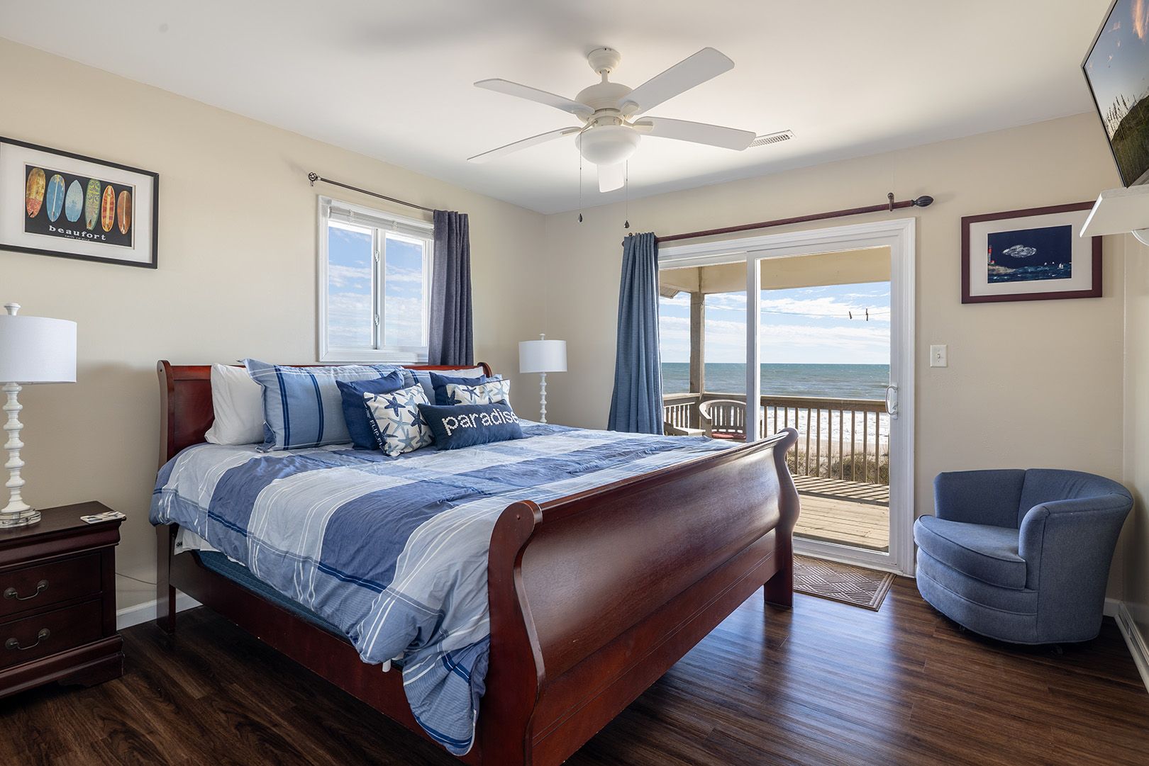 Floor 2:Â Bedrooms #1 and Bedrooms #2 are each Oceanfront with a King Bed, Smart TV with access to premium cable channels and Roku streaming apps including Hulu and Amazon Prime Video, and Deck Access. Bedroom #3 is streetside with Sound view, King Bed, and Smart TV with premium cable channels and Roku streaming apps access including Hulu and Amazon Prime Video. Bedroom #4 is streetside with Sound view, Queen Bed + 1 Set of Twin Bunks, and Smart TV with premium cable channels and Roku streaming apps access including Hulu and Amazon Prime Video. 2 Shared Full Baths. Great Room with Living Area, Dining Area, and Fully Equipped Kitchen.