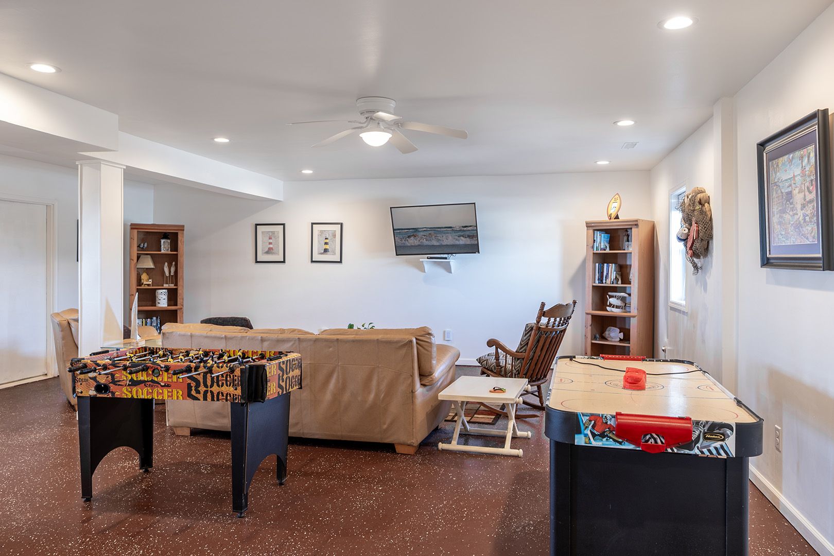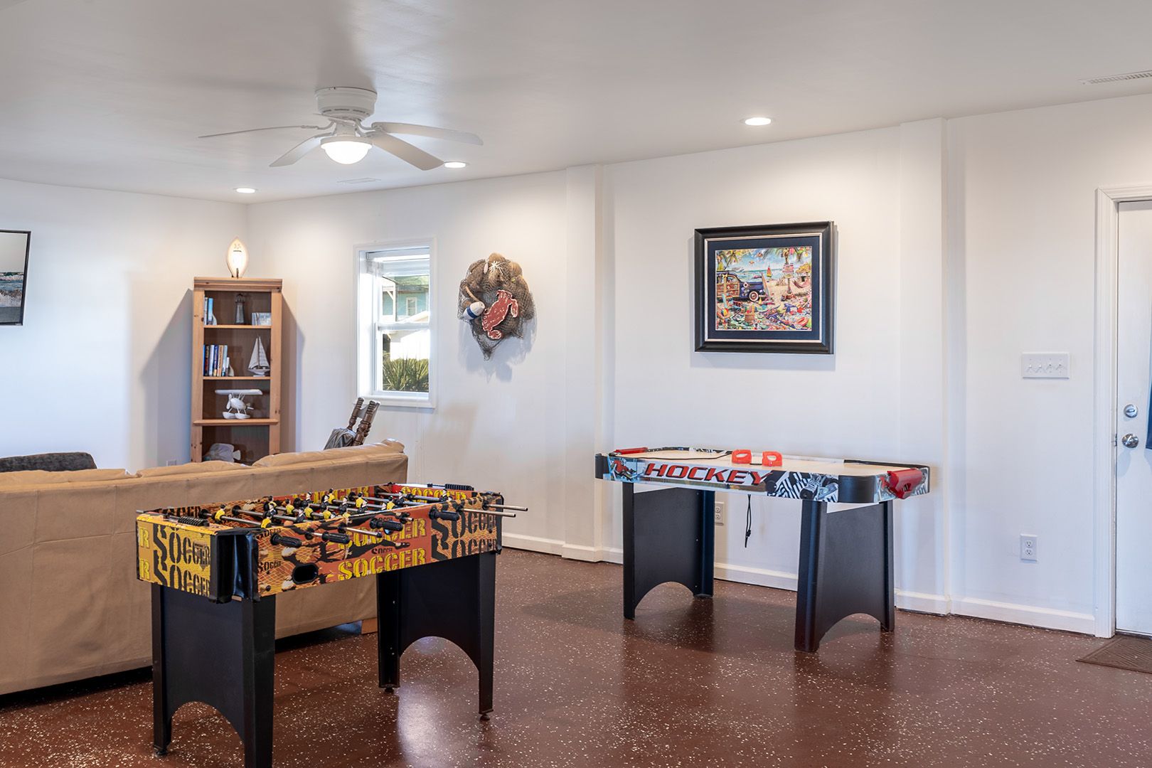 The Surf's Inn at this Oceanfront home away from home in Emerald Isle! Featuring oceanfront decks with gorgeous Atlantic Ocean views; a game room with Foosball Table, Ping Pong Table, Air Hockey, and Card/Game Table; 8 Smart TVs with access to streaming apps; and a Private Beach Access Boardwalk with Dune-top Deck, your family is sure to enjoy an epic beachside vacation full of entertainment inside and out!