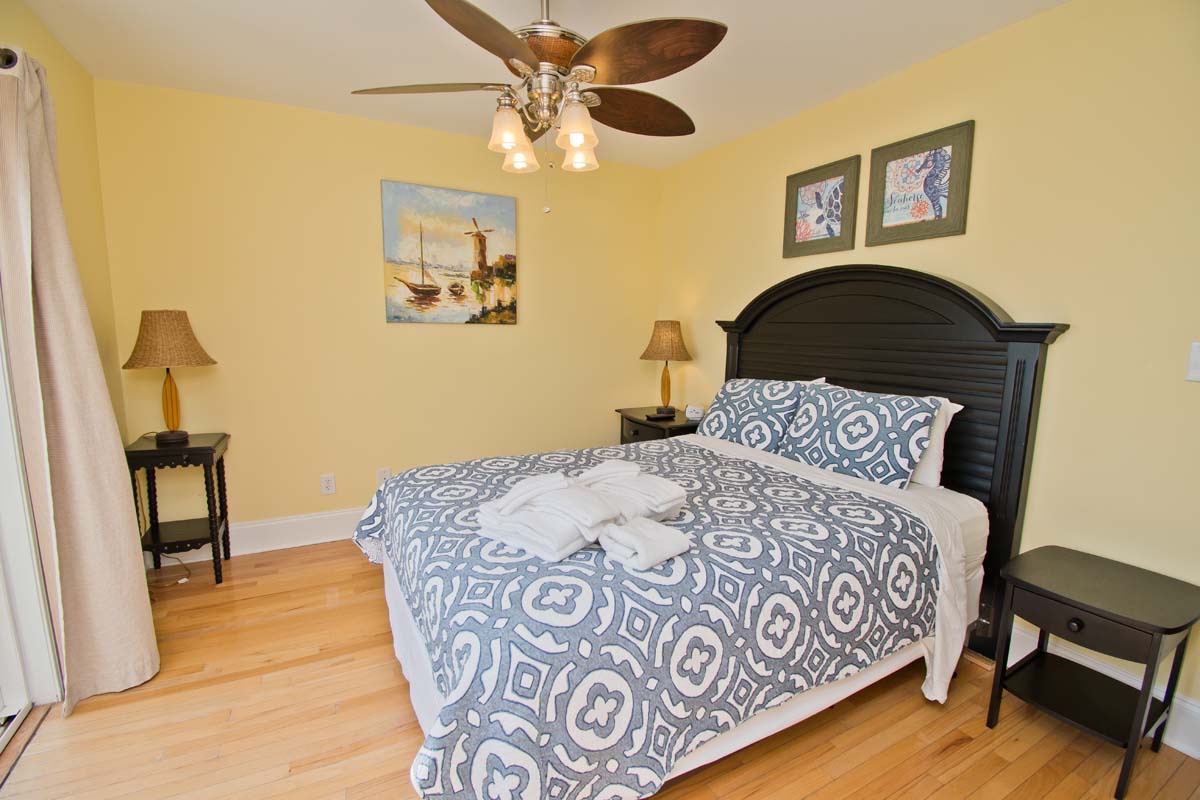 Floor #3 - Bedroom #5 Queen Bed, TV, DVD Player, Deck Access, Shared Bath |