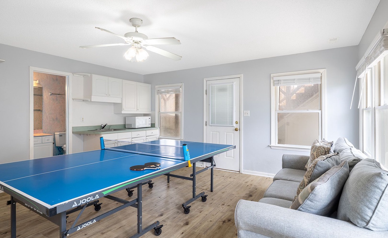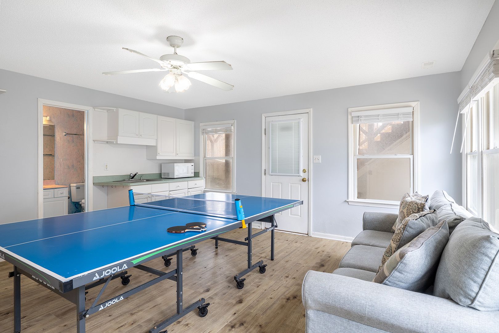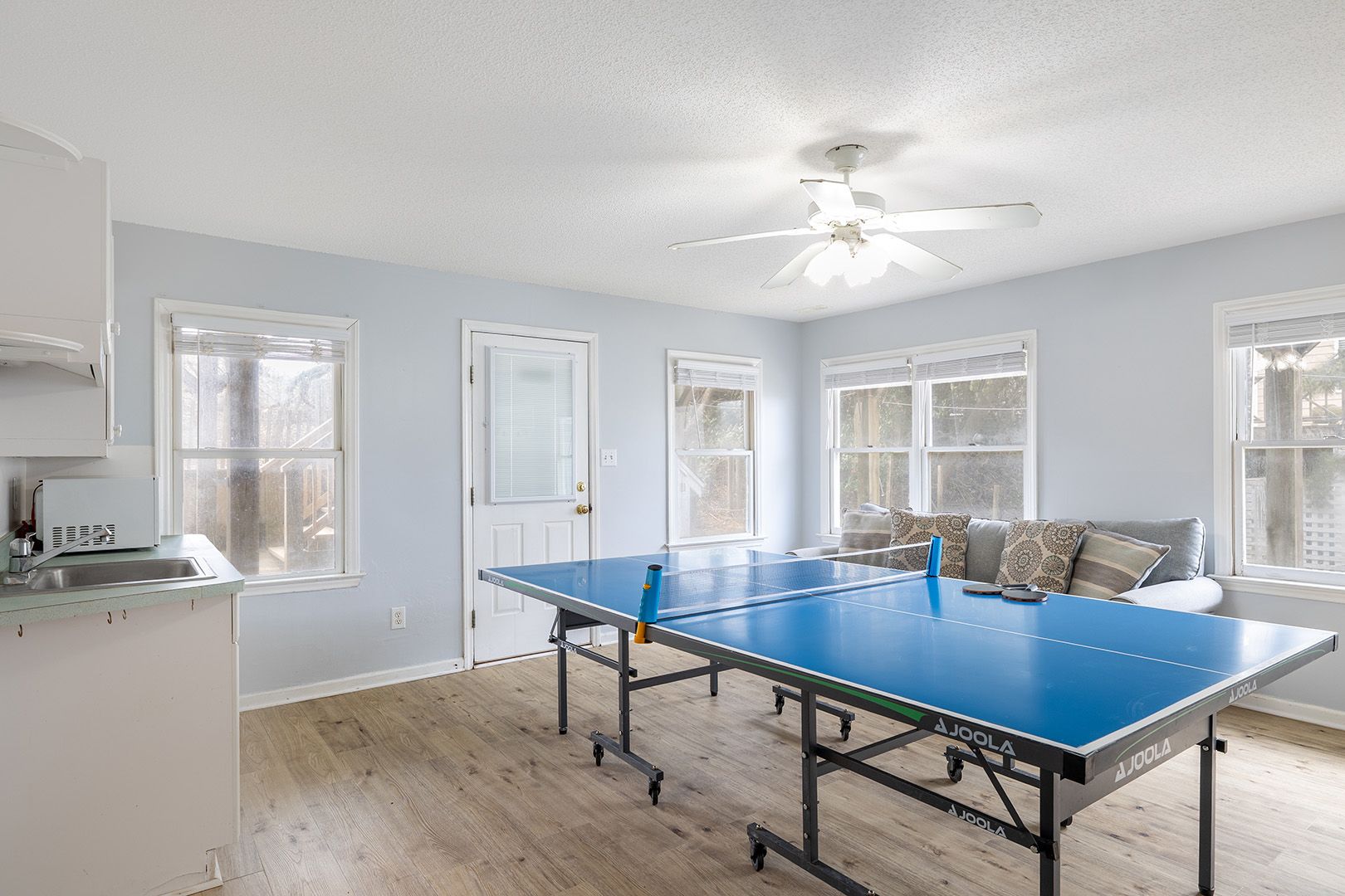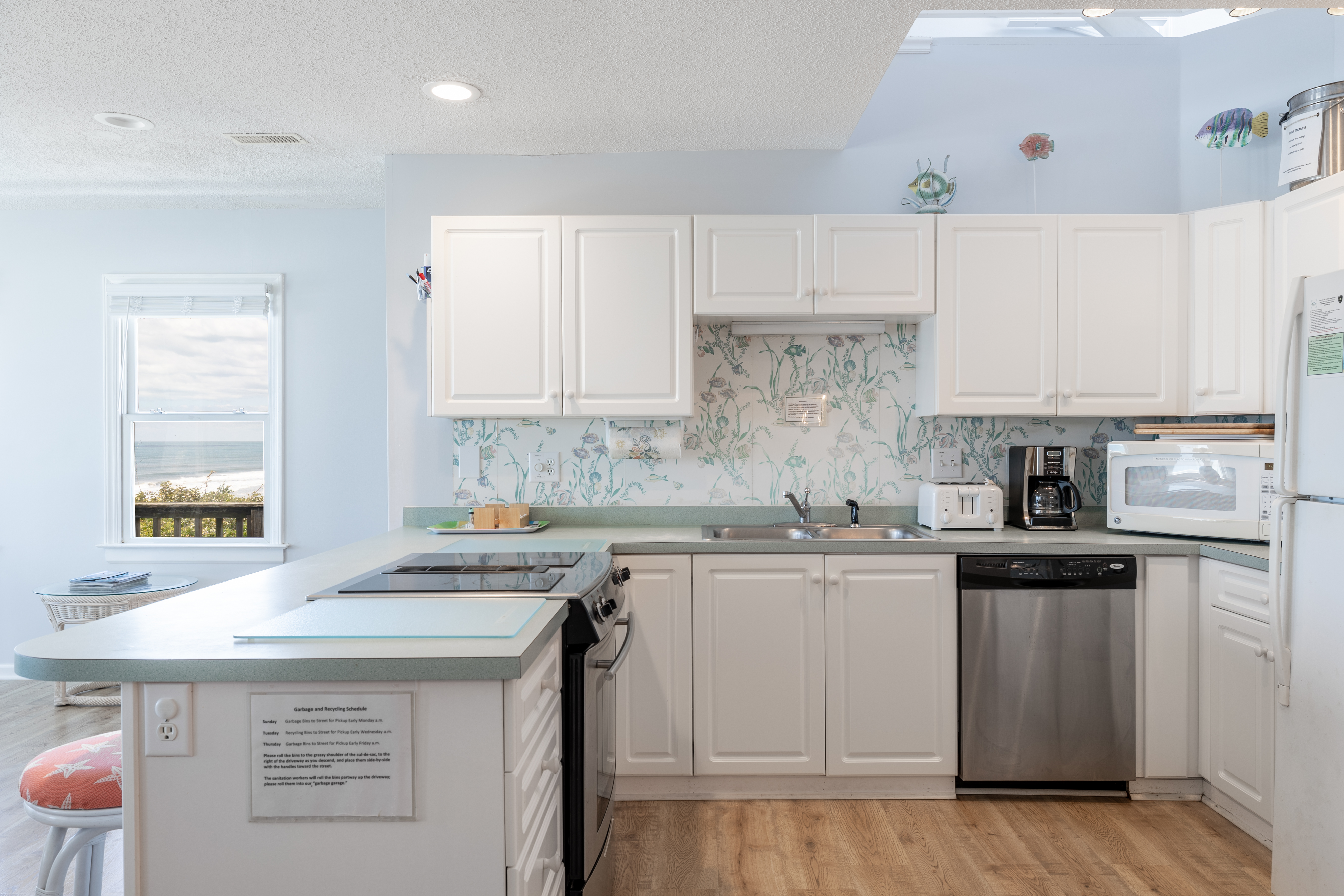Amenities: High-Speed Wireless Internet; 6 Flat Panel Smart TVs with access to streaming apps; Rec Room with Ping Pong Table and Exercise Equipment; Interior Laundry Room with Washer/Dryer; 2 Well-Equipped Kitchens each with Coffee Maker, Oven, Refrigerator, Microwave, Dishwasher; Central Heat/Air; Covered and Open Decks With Furniture; Charcoal Grill; Enclosed Outside Shower with Hot/Cold Water; Private Beach Access Walkway.