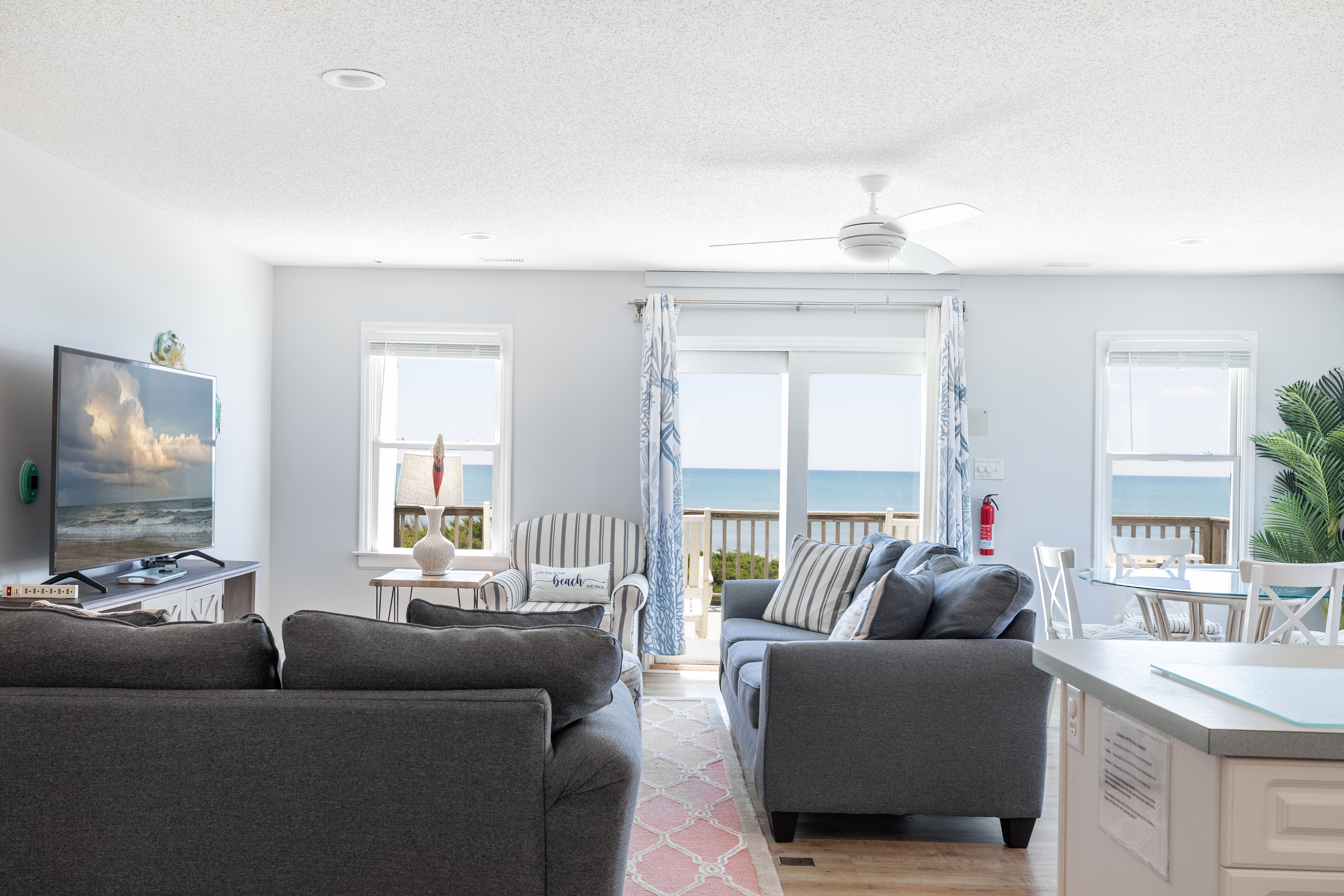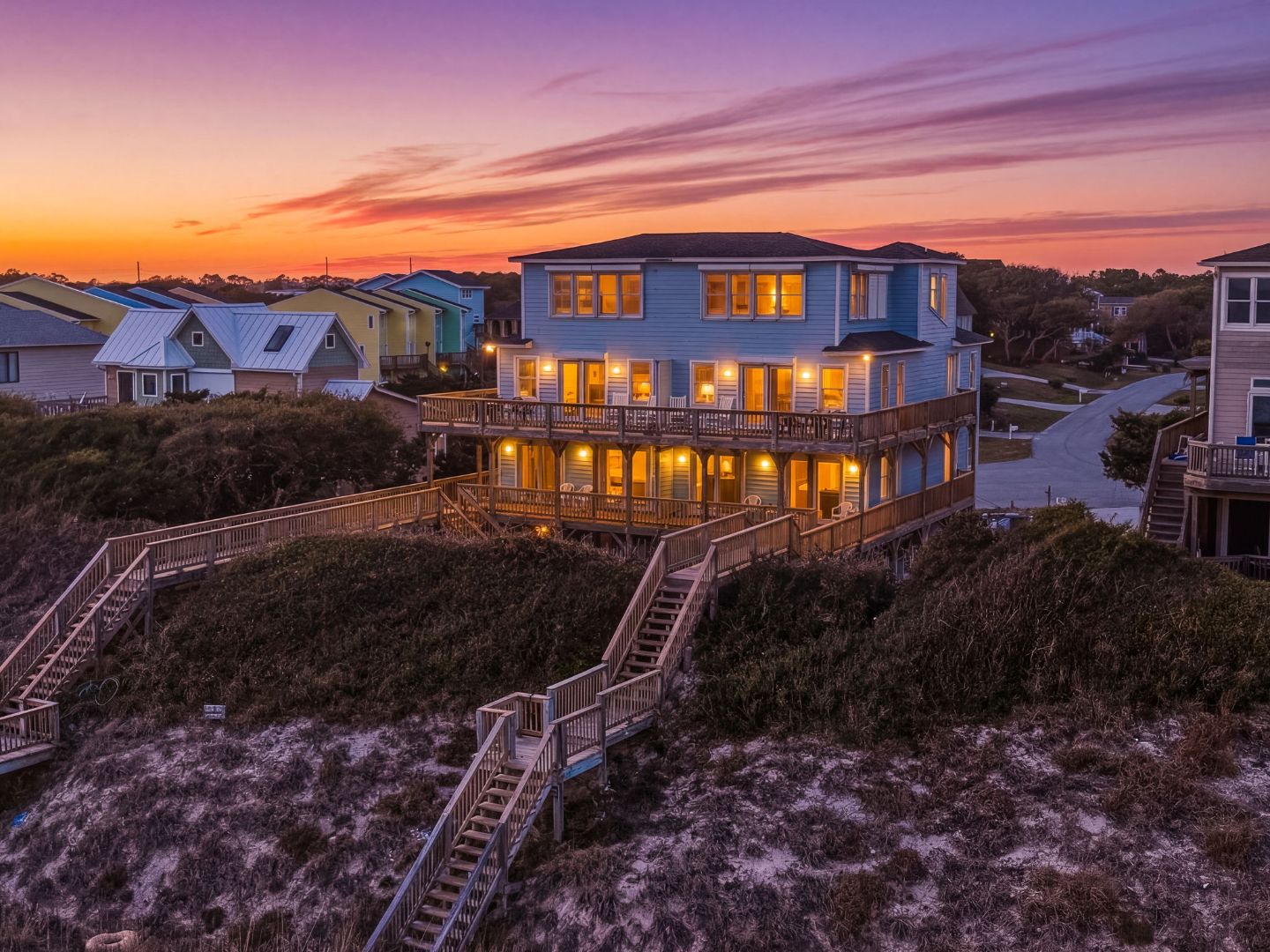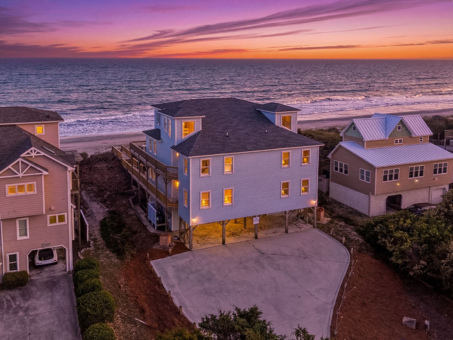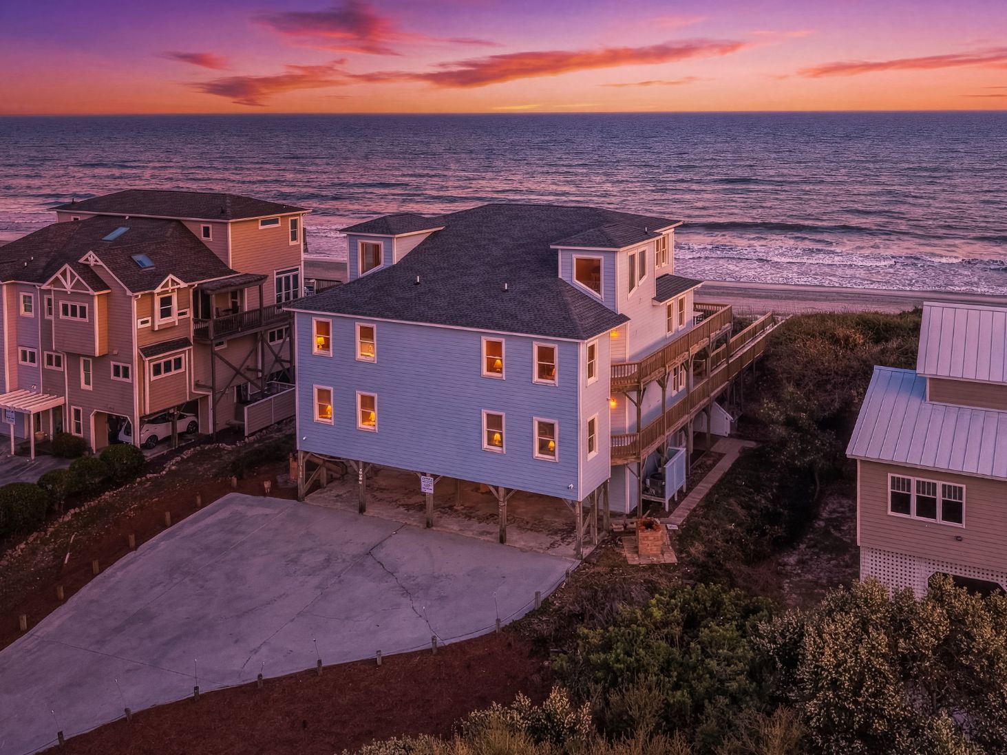 Formerly Islandia East & West, Thalasea combines two oceanfront duplexes into one expansive vacation home - perfect for large or multi-family gatherings. With over 5,400 square feet across four levels, this beautifully designed retreat offers stunning Atlantic views, generous living spaces, and direct beach access.