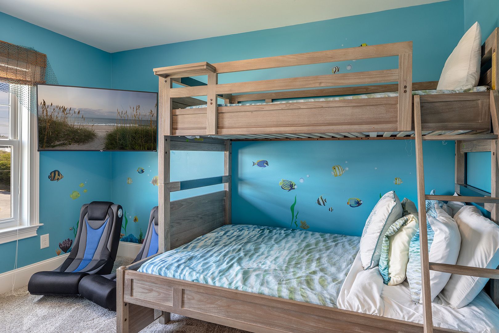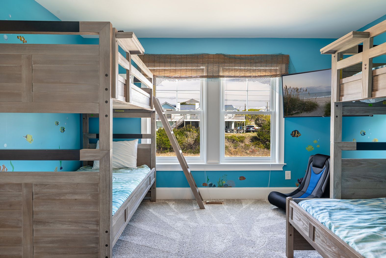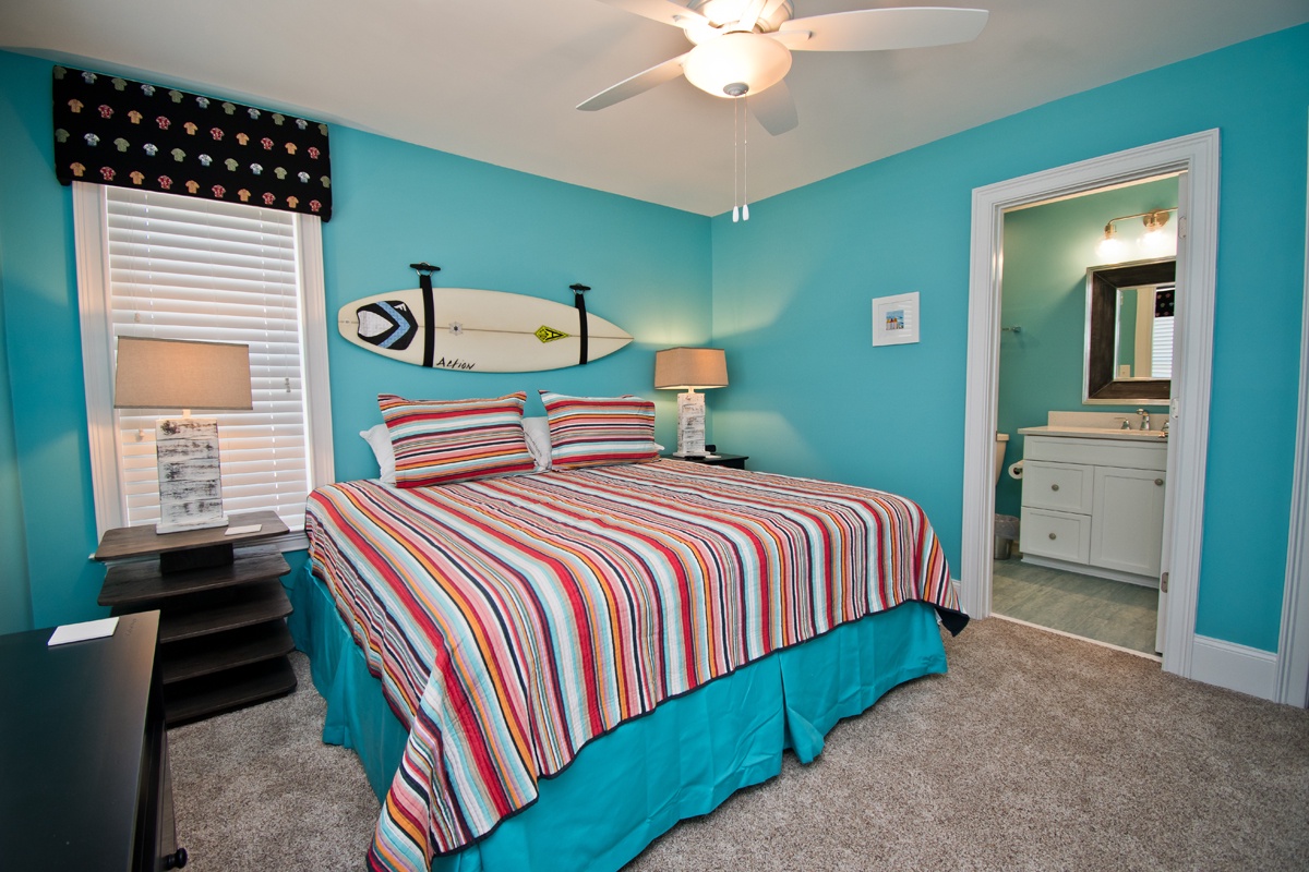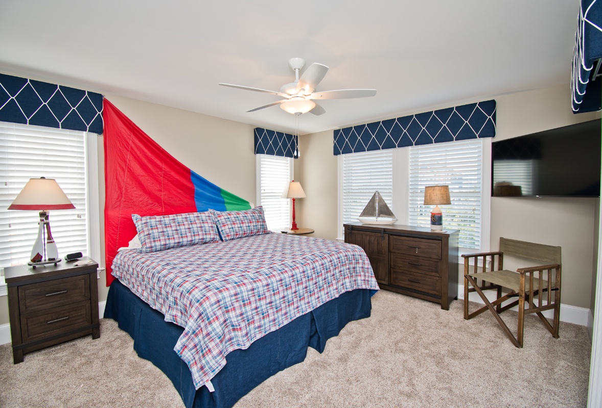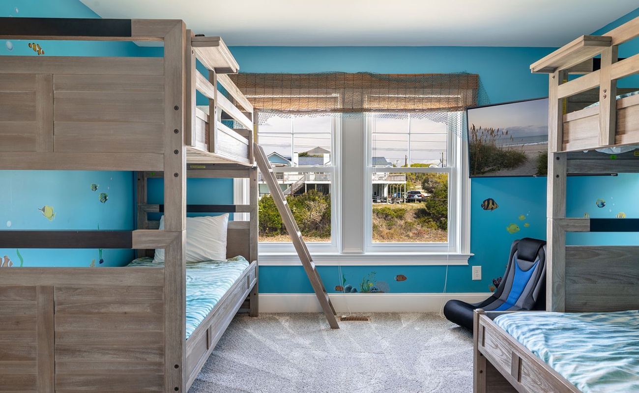 • Bedroom #3: A cheerful streetside Bunk room offering a Twin-Over-Double bunk and an additional Twin bunk, complete with a private bath and TV. Ideal for kids or guests who love their own cozy space.