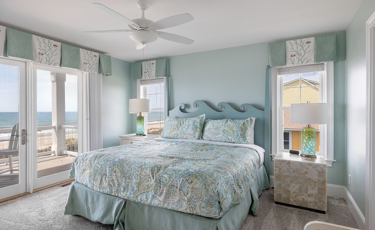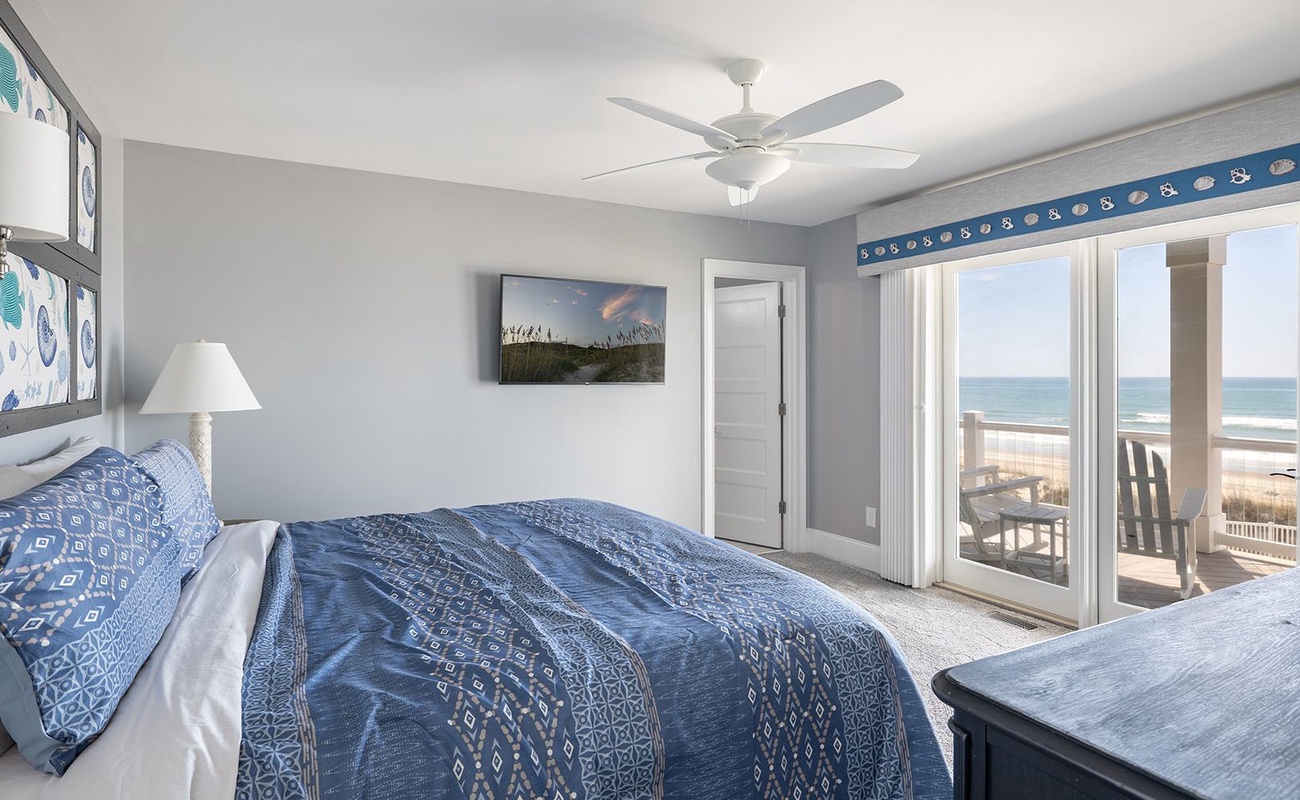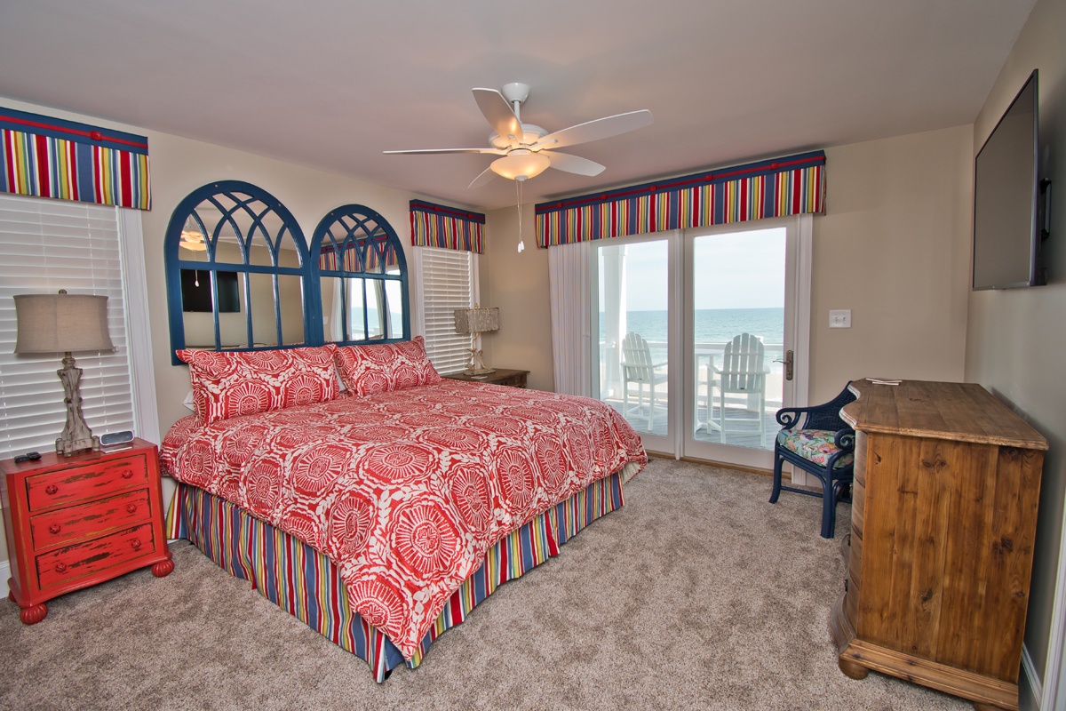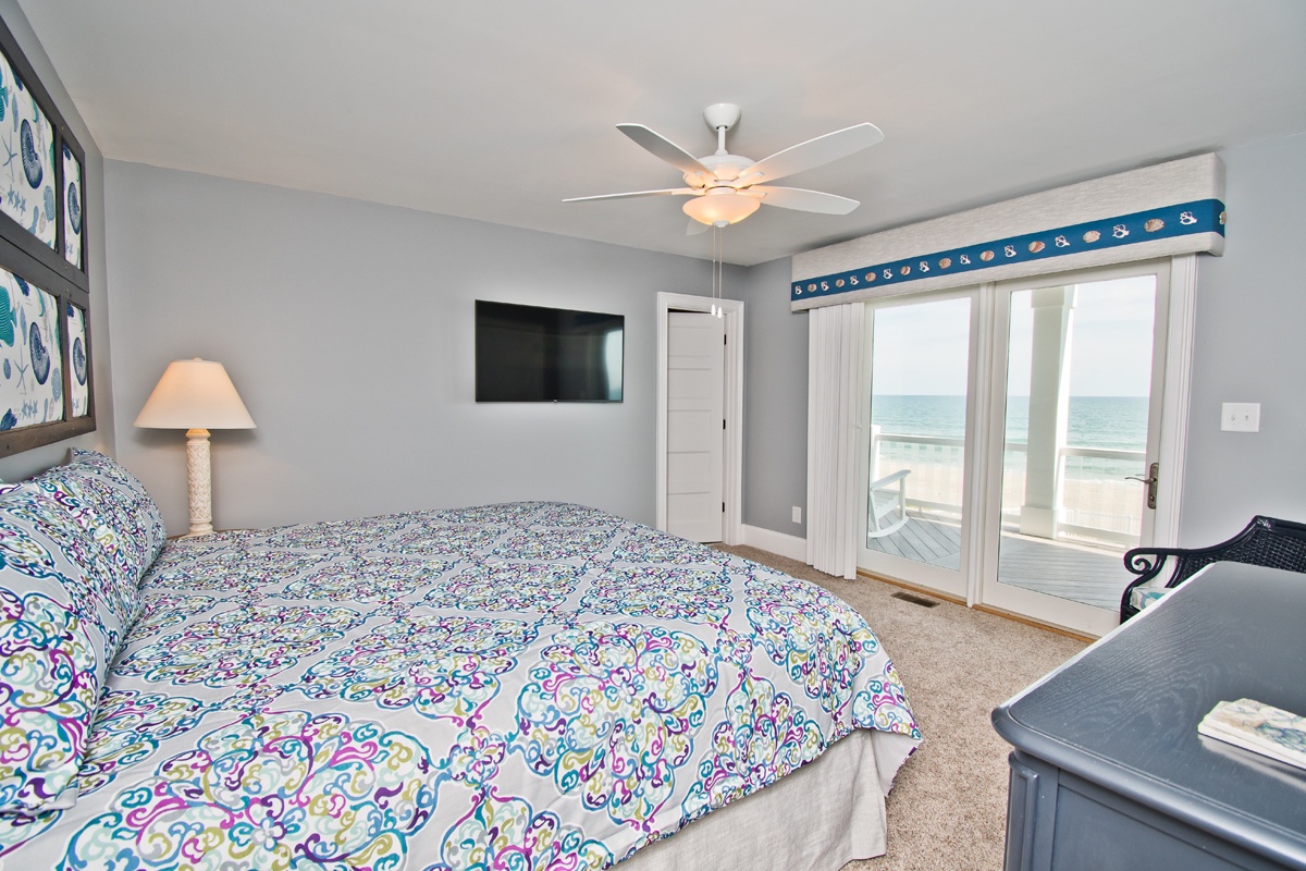 Floor #1 - Bedroom #1 Attached Bathroom Master King - Oceanfront - TV - Private Bath - Deck Access |