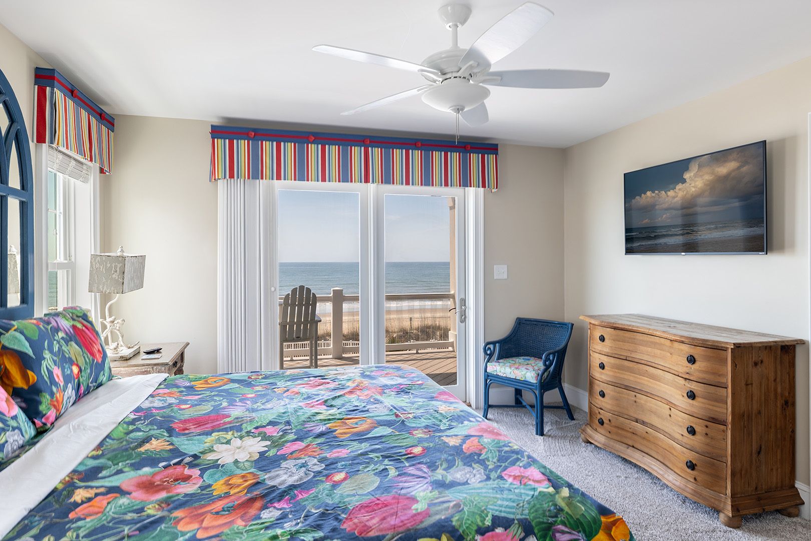 • Bedroom #1: An oceanfront King Master retreat with direct balcony access, a private bathroom, and TV. Drift off to sleep to the calming rhythm of the waves and wake to breathtaking ocean views - your own slice of seaside serenity.