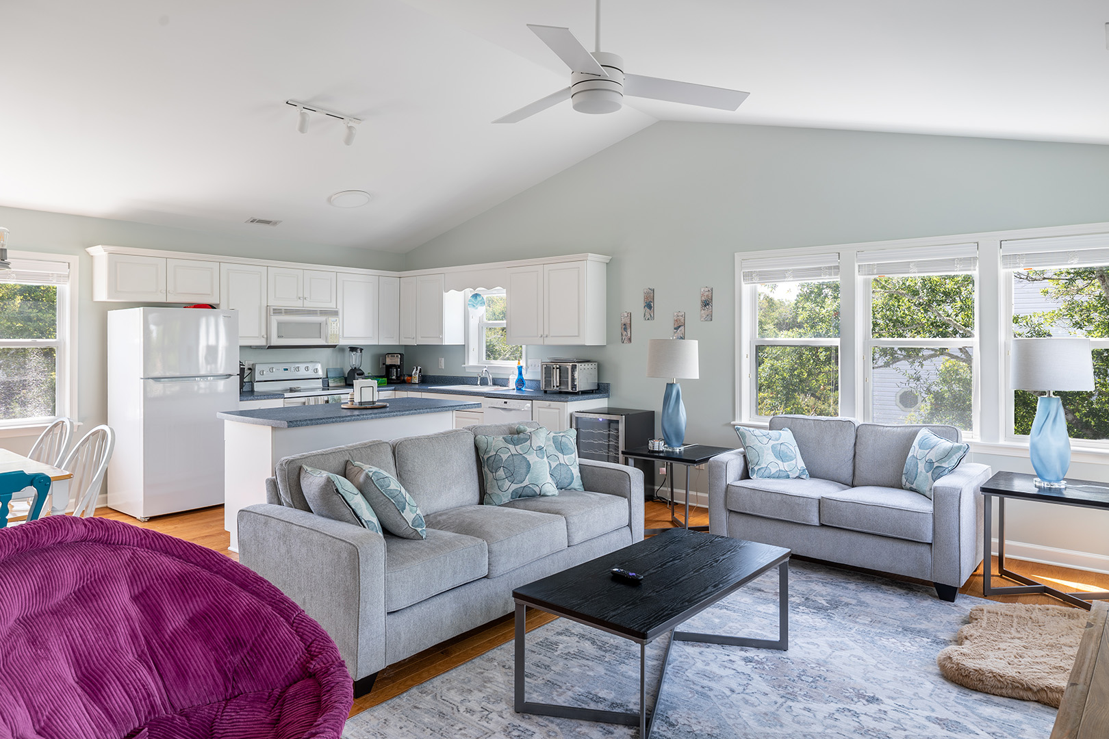 Amenities: 4 Smart TVs, High Speed Wireless Internet; Rec Room with Pool Table; Interior Washer/Dryer; HVAC, Ceiling Fans; Fully Equipped Kitchen with Stove/Oven, Refrigerator, Coffee Maker, Keurig Coffee Maker, Microwave, Dishwasher, Beverage Refrigerator, Toaster Oven, Blender, Air Fryer; Covered and Open Deck Areas with Furniture; Enclosed Hot/Cold Outdoor Shower; Driveway Parking.