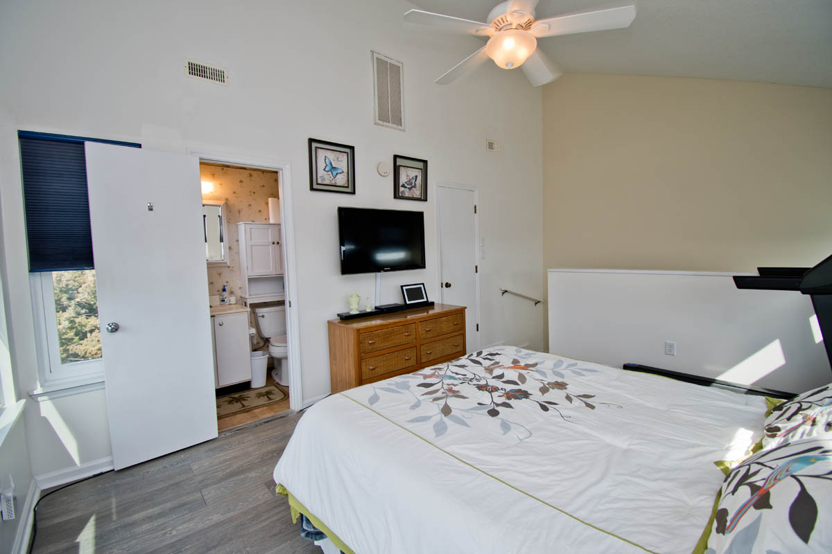 Floor #1 - Bedroom #1 Queen Bed - TV - Deck Access - Attached Bath |