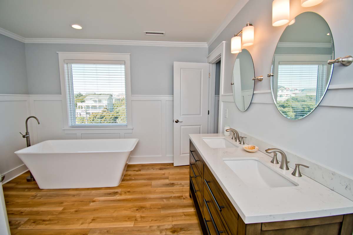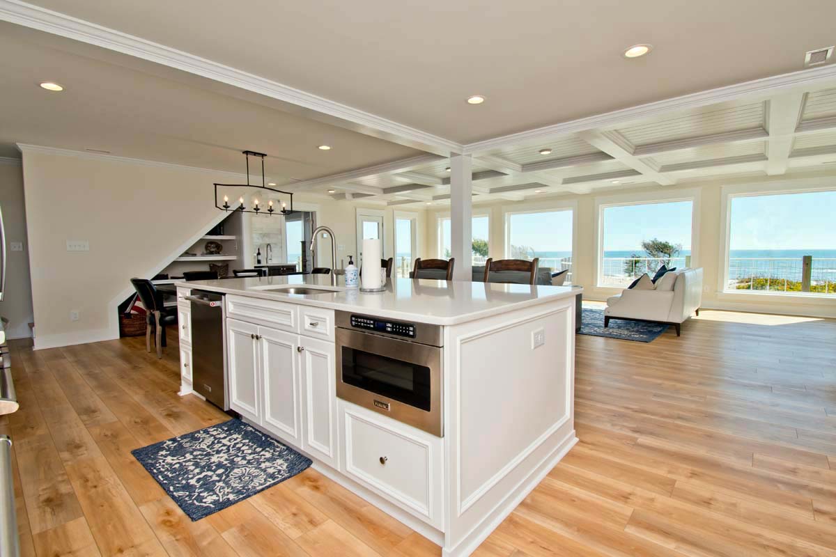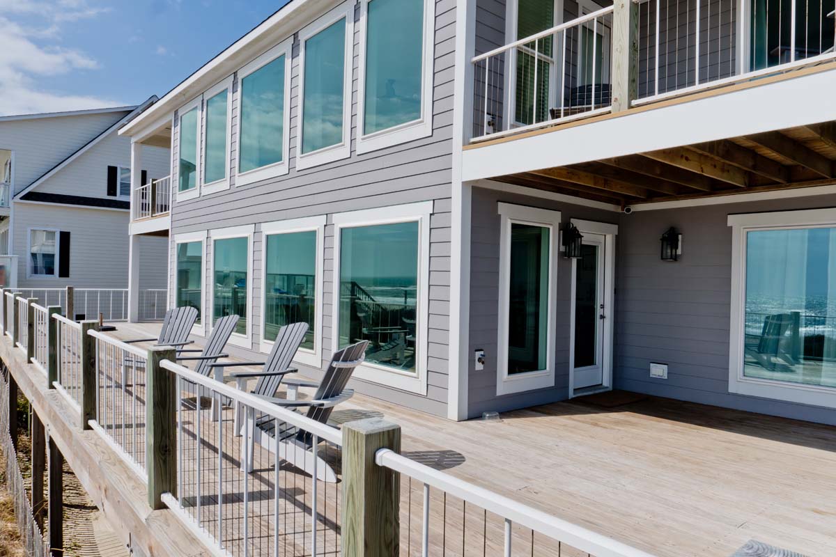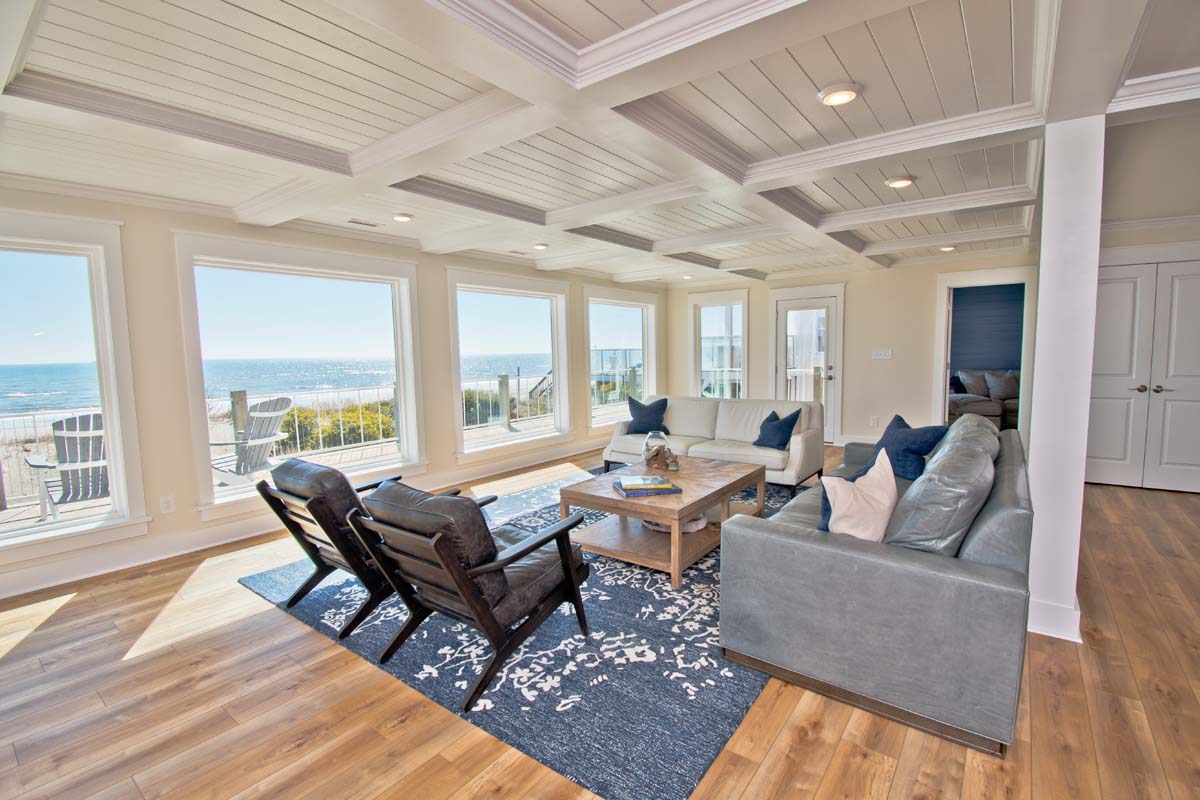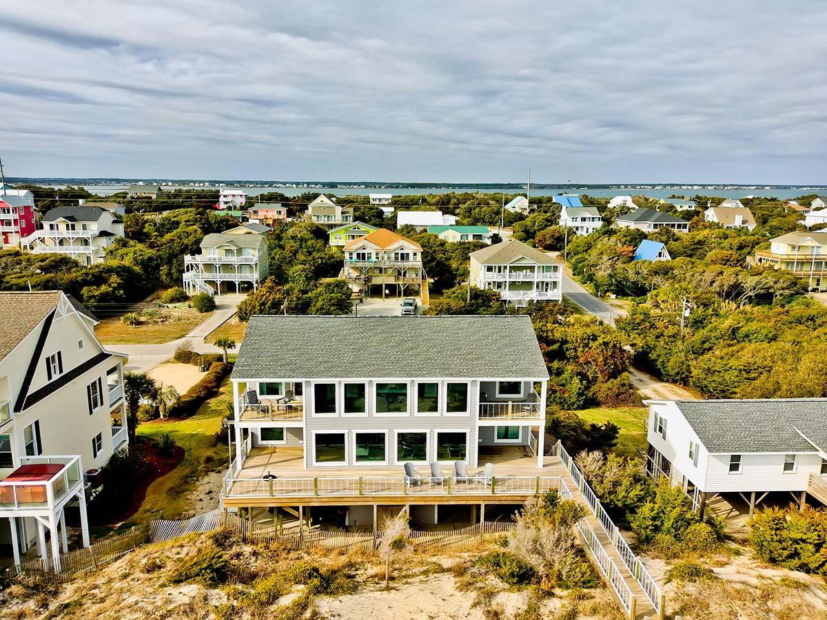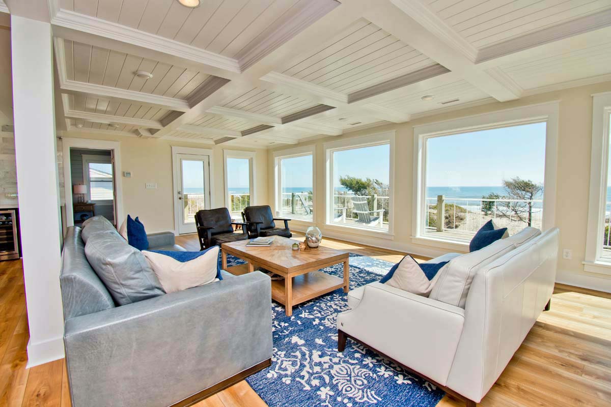Designed for relaxation and escape and completely rebuilt in 2020, Triquetra (Sea, Sky, Land) is an Oceanfront 5-bedroom, 6-bathroom home nestled in the beautiful town of Emerald Isle.