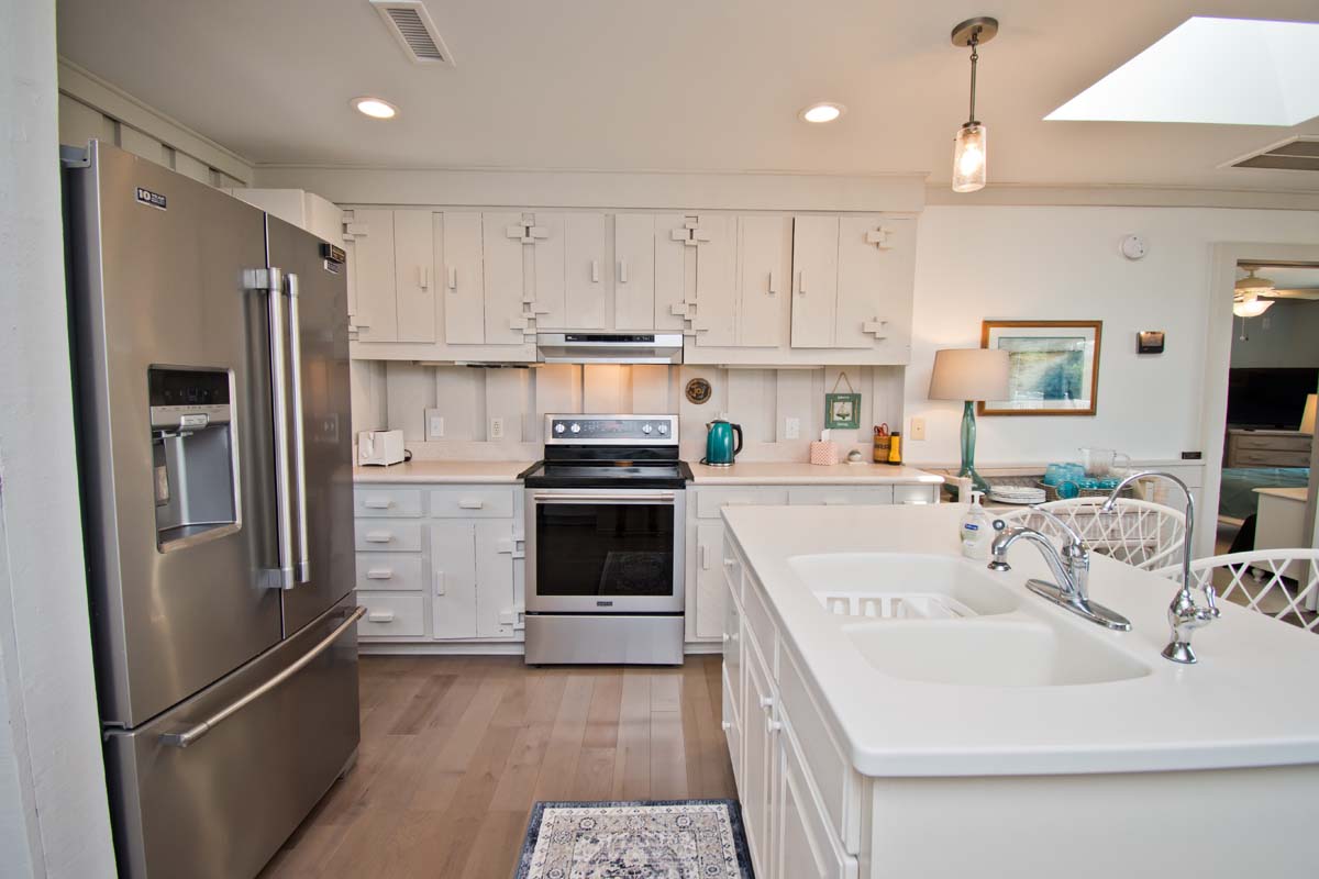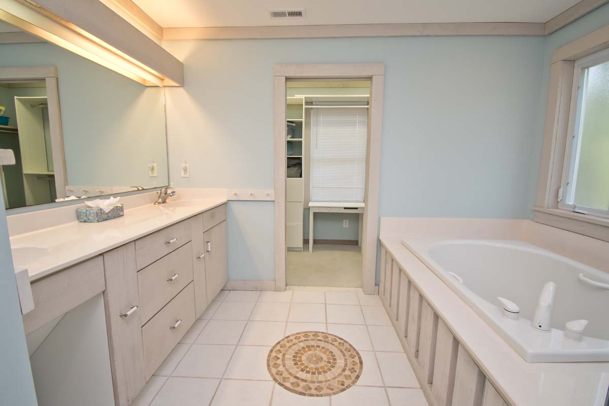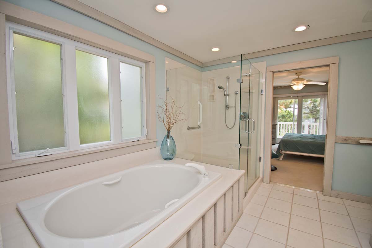 The spacious 4-bedroom, 3.5-bath home has a master suite with a walk-in shower plus a deep soaking tub, perfect for unwinding after a day at the beach.